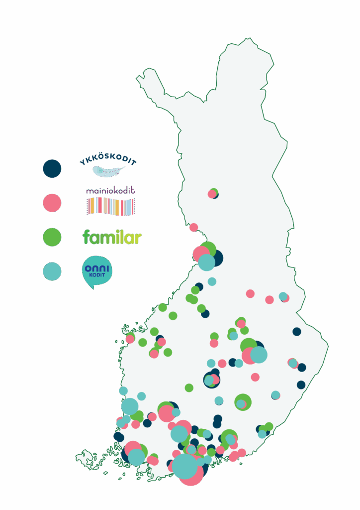 Meillä on 8 000 asiakaspaikkaa ja työllistämme noin 5 200 sosiaali- ja terveydenhuollon ammattilaista yli 300 palveluyksikössä eri puolilla Suomea.